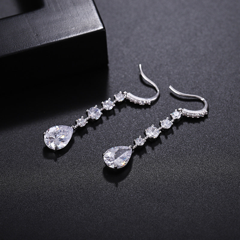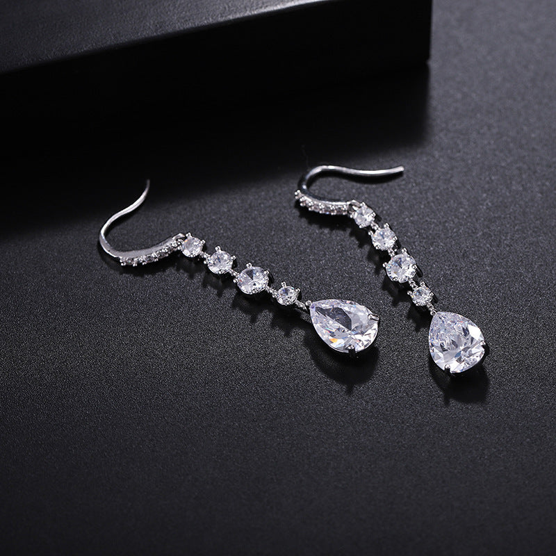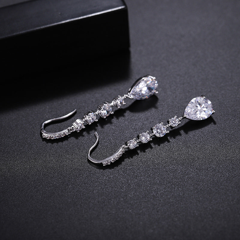 Europe And America Long Drop Earrings Copper Inlaid Strip
