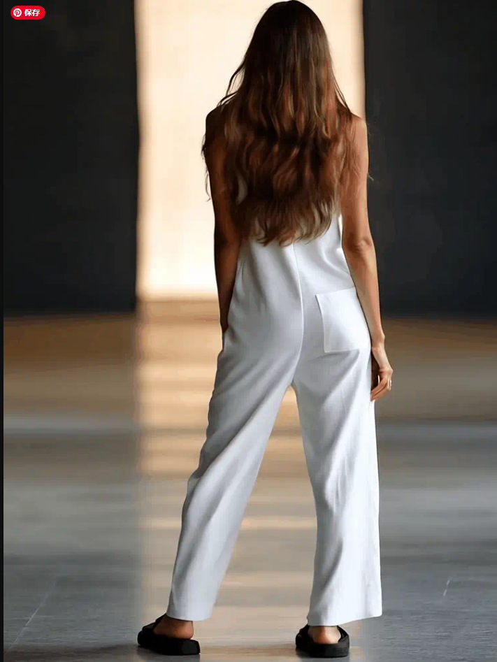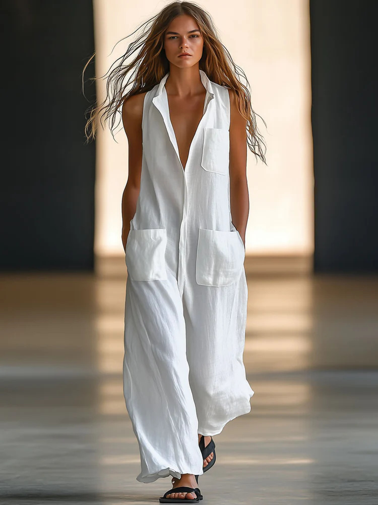 Fashion Loose Sleeveless Single-breasted Wide-leg Pants