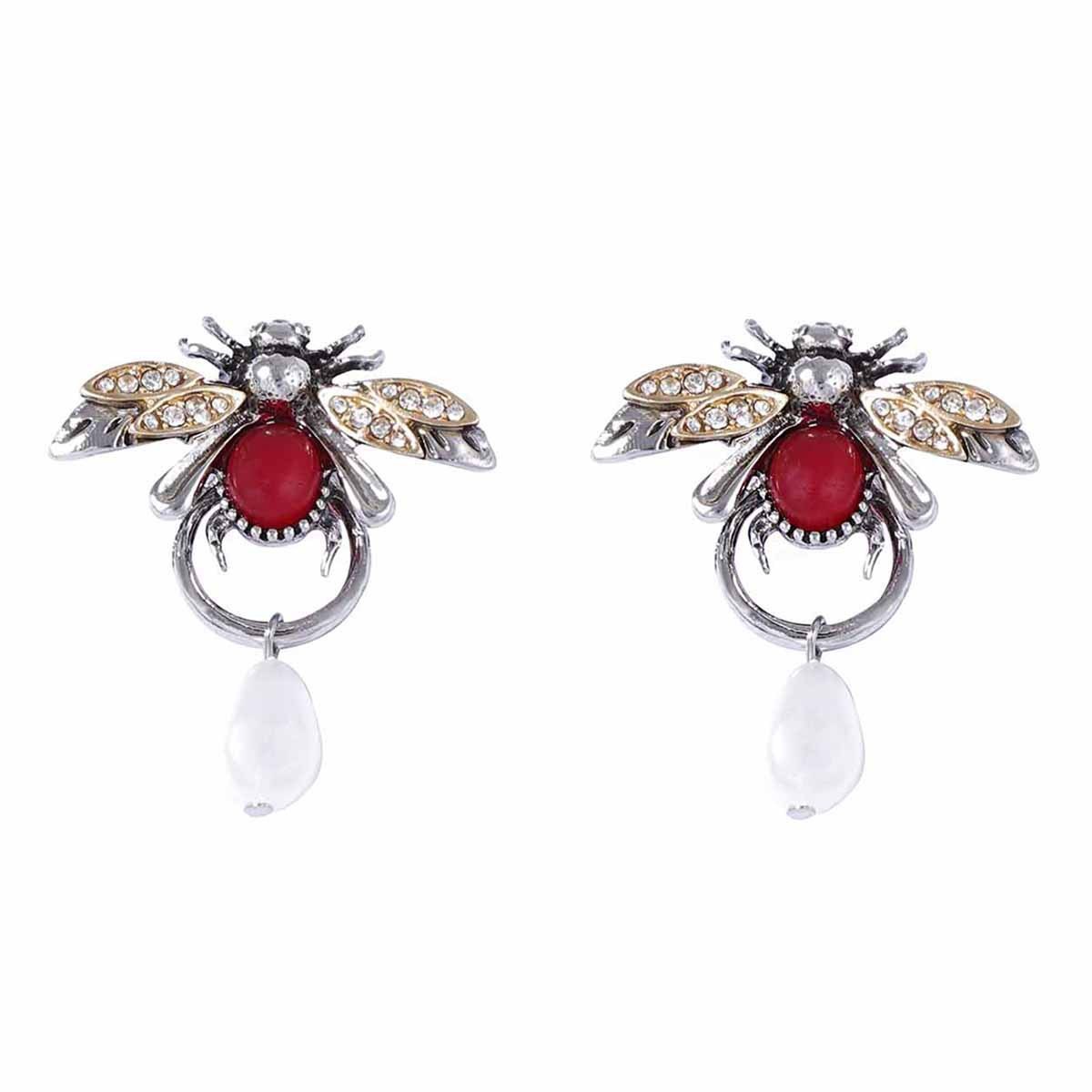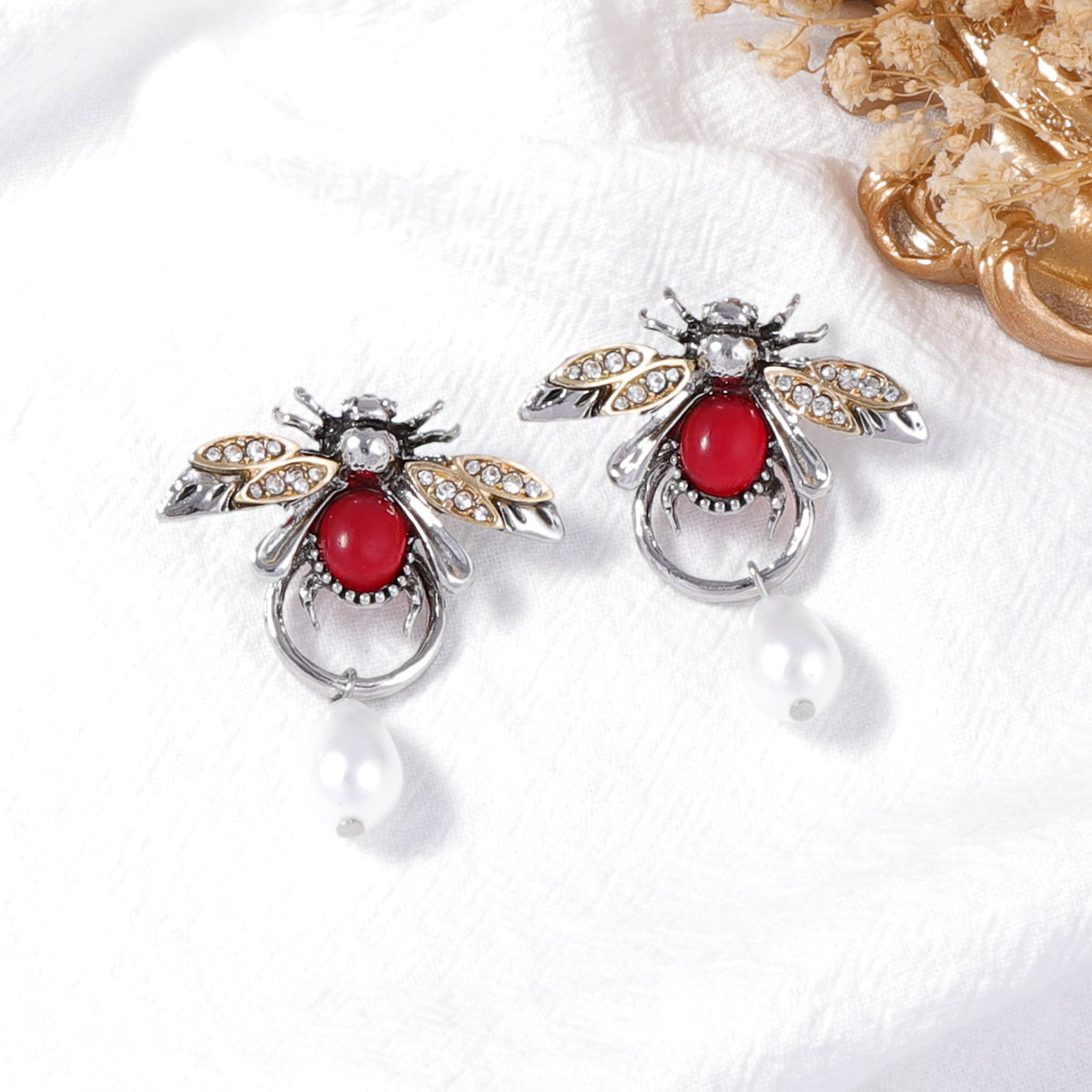 Personality Temperament Alloy Insect Bee Water Drop Imitation Pearl Earrings