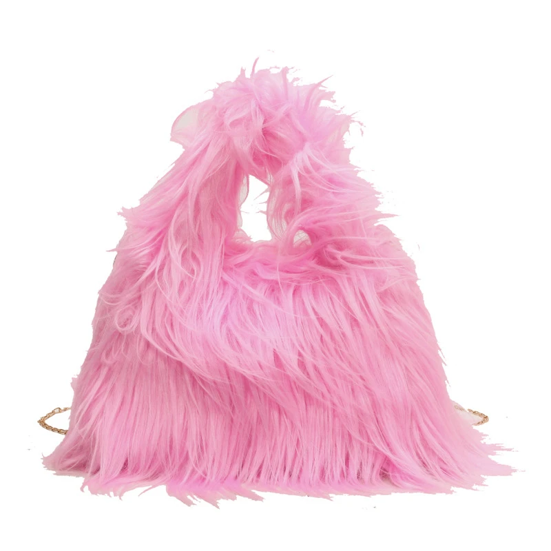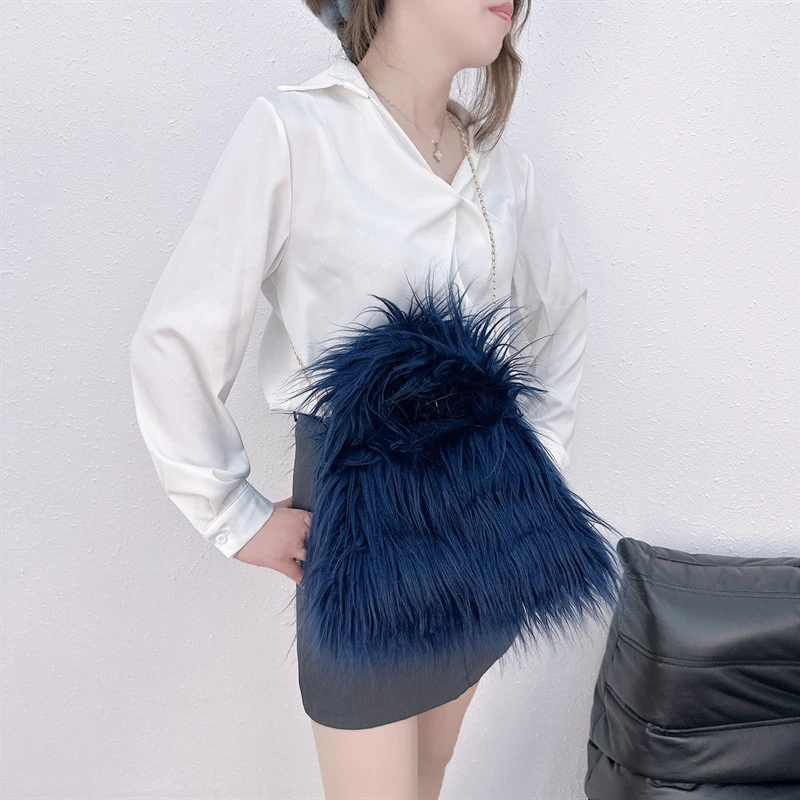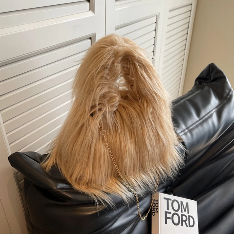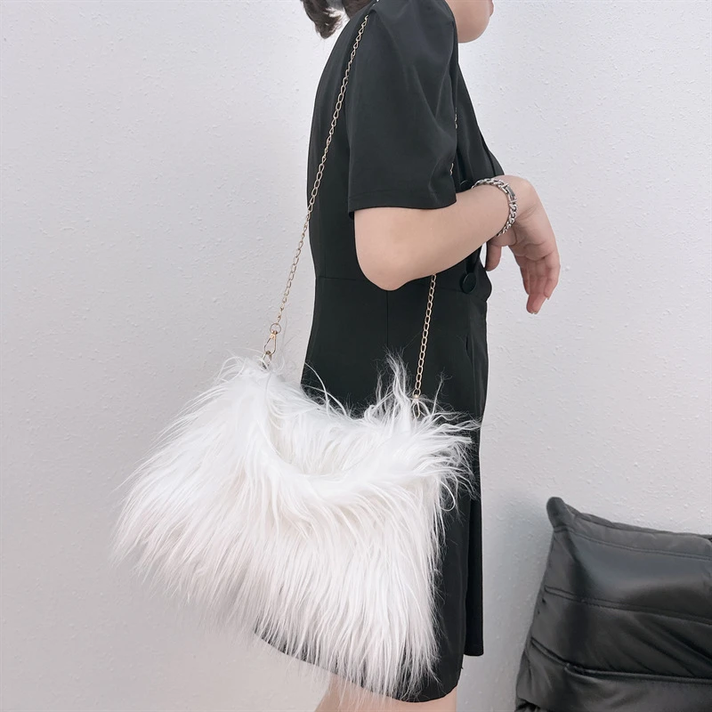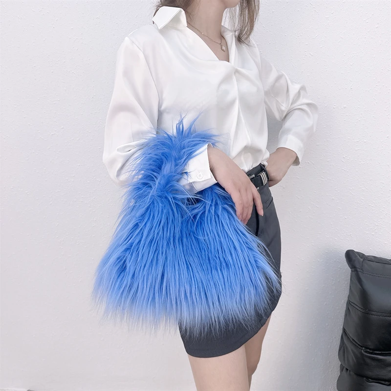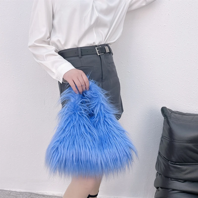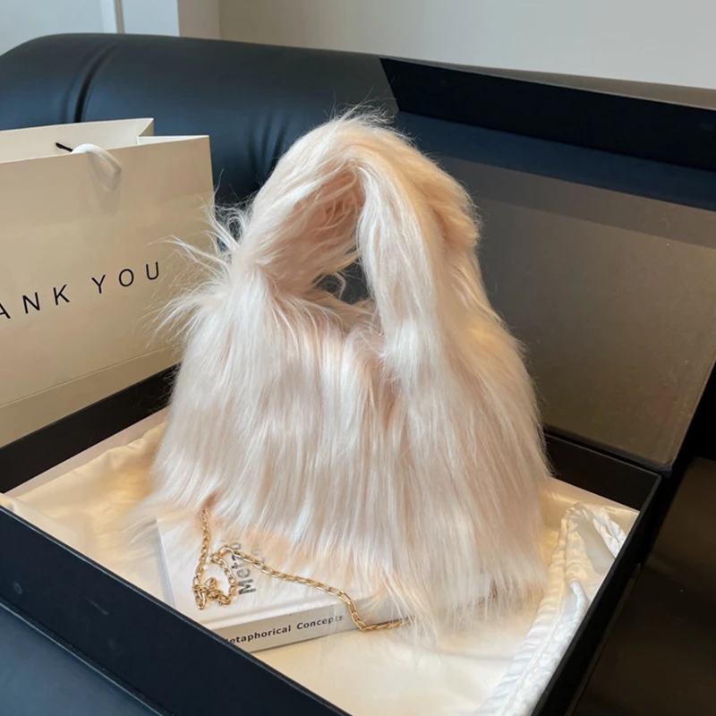 Winter Faux Fur Shoulder Bag for Women Trendy Fuzzy Handbags Plush Crossbody Bag Fluffy Tote Bag Handle Mobile Phone Bag