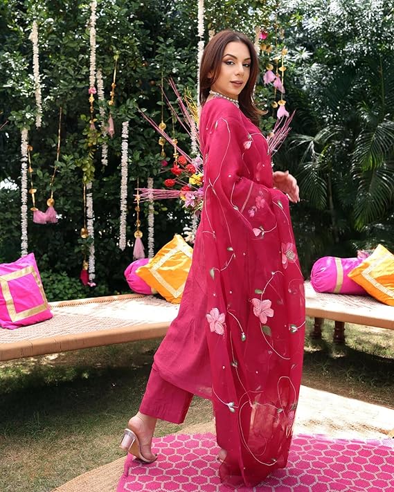 - This set includes: 1 Kurta and 1 Pant with Dupatta || Work :- Printed || Neck Style:-V-Neck