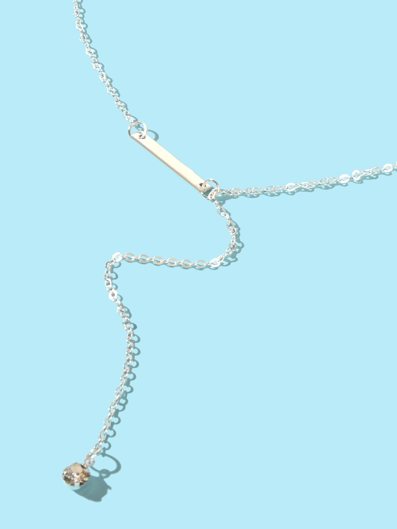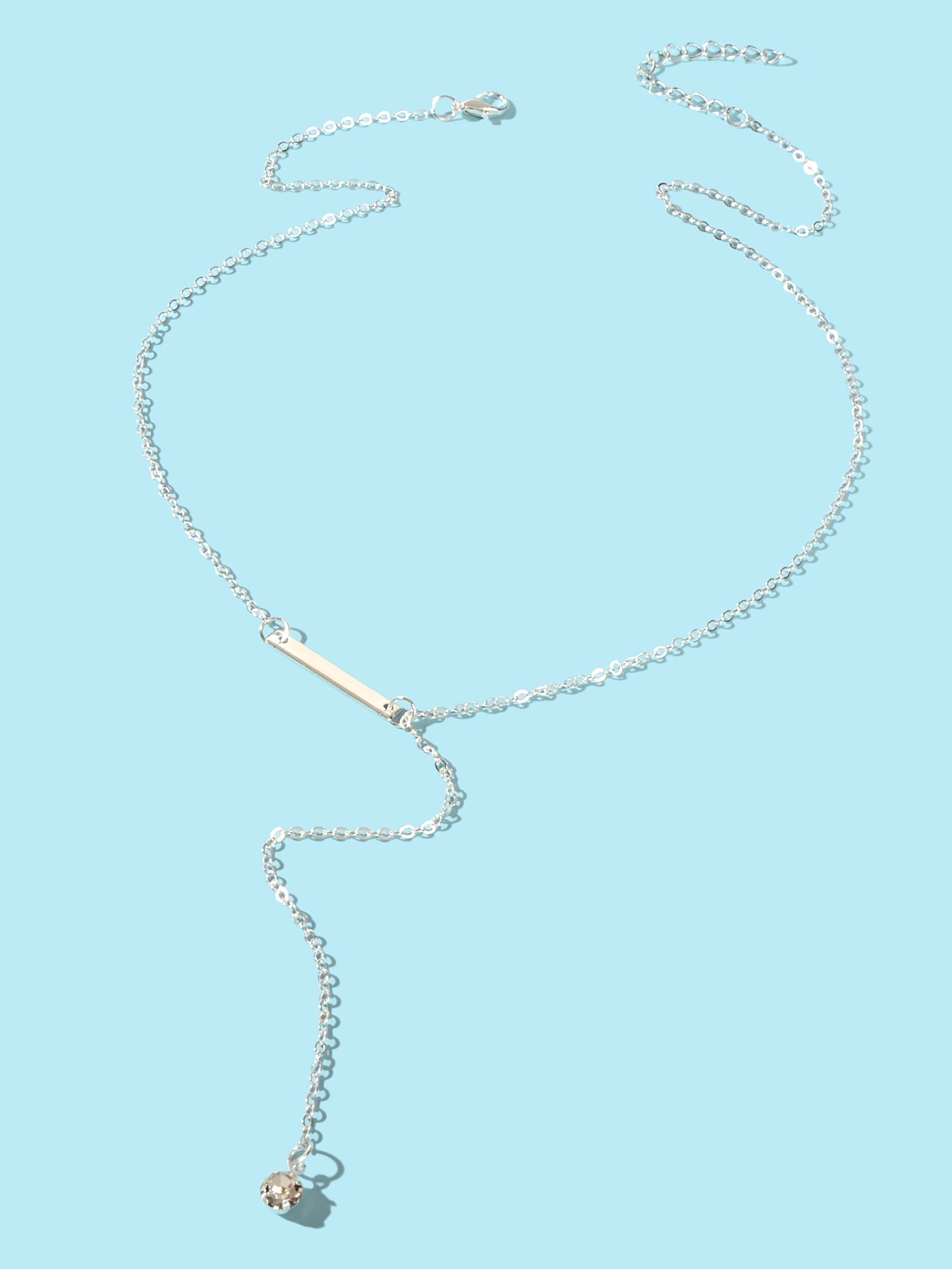 Feelontop Jewellery Silver Chain Rhinestone Fringe Y Necklace Women Accessories