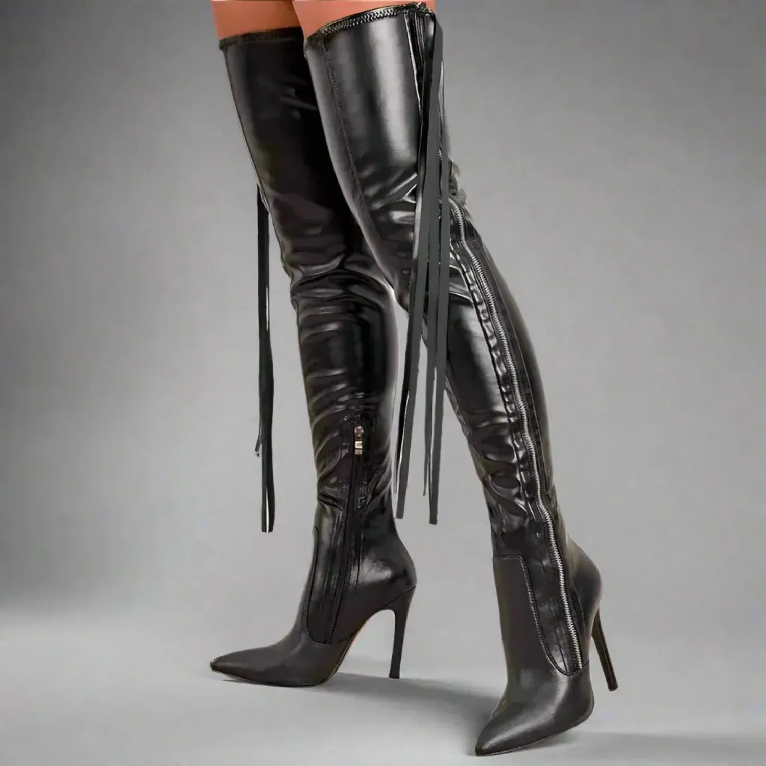 Step into bold fashion with our Fringe Over-The-Knee Boots, featuring dramatic fringe trim and sleek 11 cm stilettos. These high-impact boots are designed for confident women who love turning heads—perfect for nights out, parties, or standout streetwear looks.
