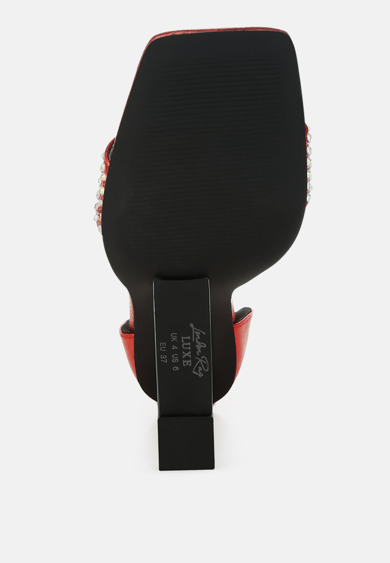 Indulge in luxury with these AB rhinestone-embellished heels, crafted from luxe, shiny fabric. Featuring an open square toe and a detachable lace-up detail, they’re designed to impress. With plush cushioned insoles and striking 4-inch cut-out fantasy heels, they’re the ultimate pair for your party and wedding collection.