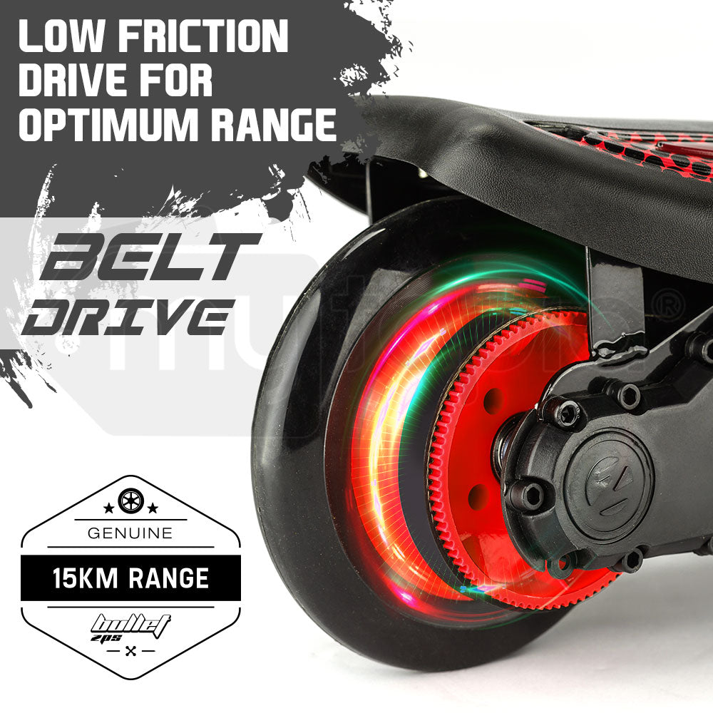 The Bullet ZPS electric scooter boasts 140 watts which allows for smooth exhilarating acceleration! It can zip along at speeds of up to 15km/h, which is fast enough for maximum fun, without causing chaos in the local park.
