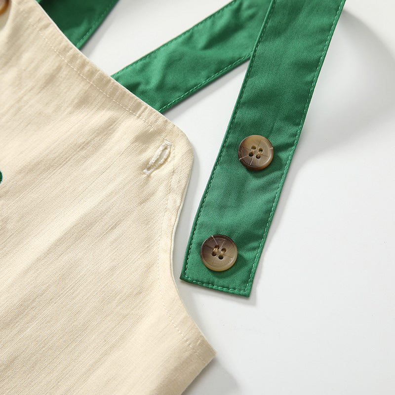 This charming summer set features a short-sleeved top and matching overalls adorned with a playful cartoon fruits pattern. Crafted for comfort and style, it offers breathable fabric ideal for warm days, ensuring your little one stays cool and effortlessly fashionable. Perfect for everyday wear or special outings, this ensemble combines practicality with a delightful design that captures the spirit of childhood.